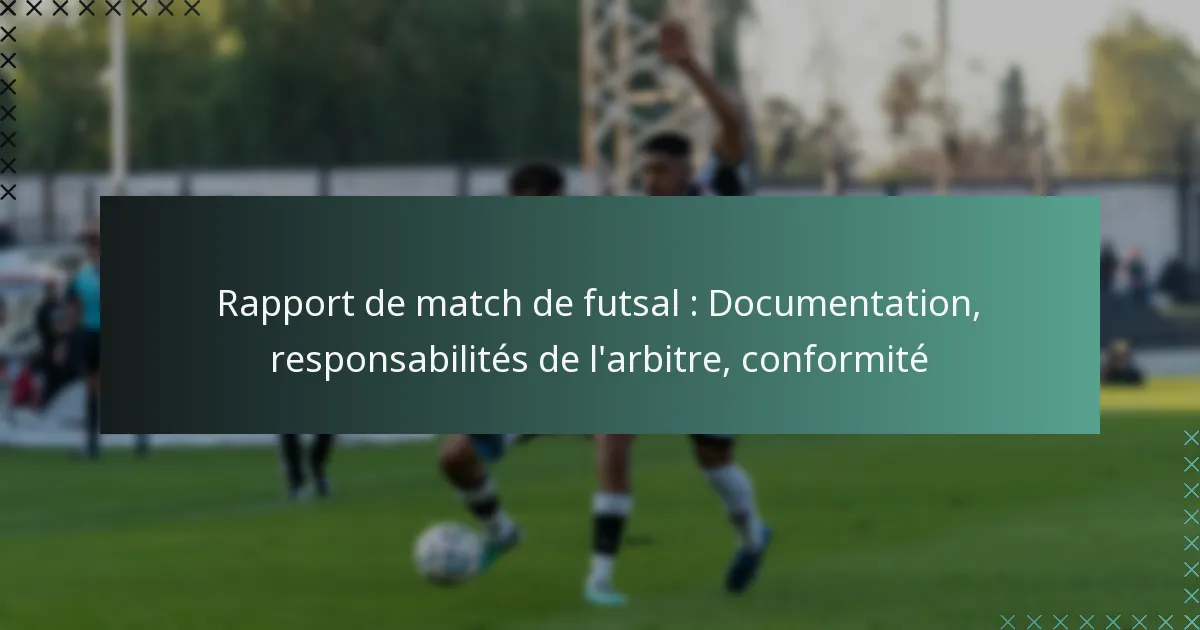 Les matchs de futsal nécessitent une documentation spécifique pour garantir la conformité, un rapport précis et une tenue de dossiers appropriée. Les documents essentiels incluent des formulaires de rapport de match, des listes de joueurs et des feuilles de score, qui sont critiques pour maintenir l’intégrité du jeu.