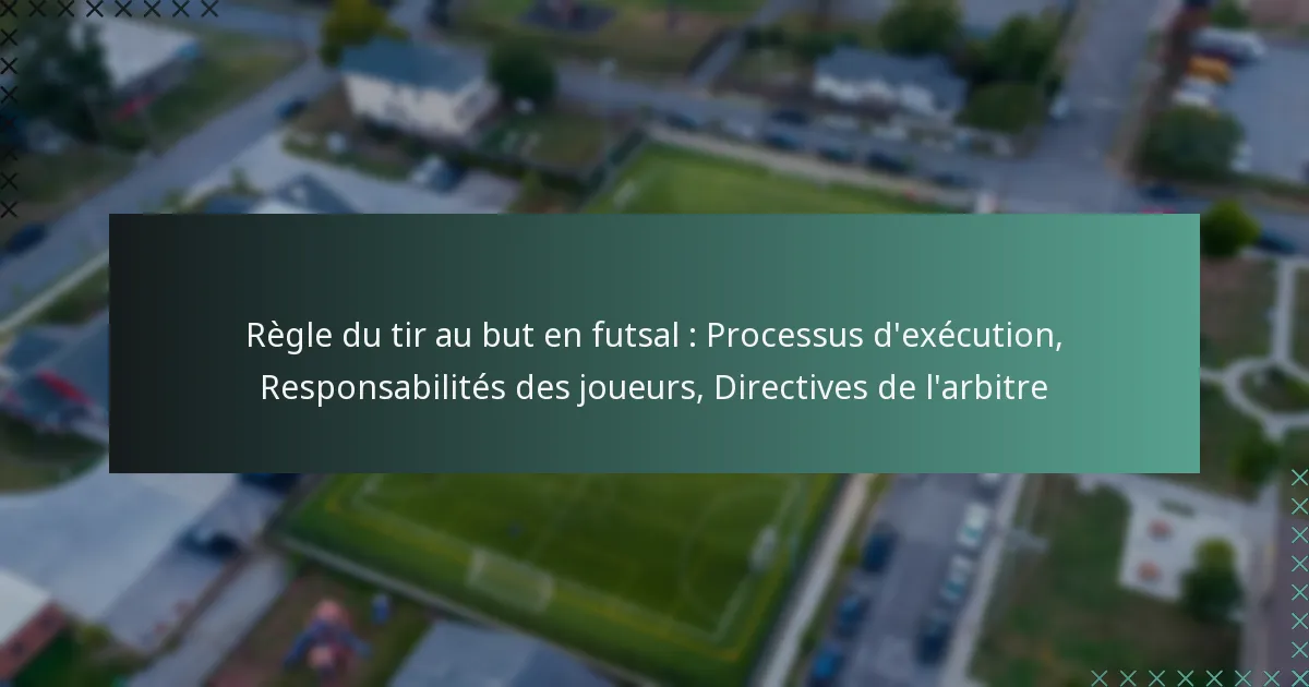 Un tir au but en futsal est un moment crucial dans le jeu, accordé pour des fautes commises dans la surface de réparation, permettant à l’équipe attaquante une chance de marquer depuis un endroit désigné. Le processus d’exécution implique des responsabilités claires pour le joueur effectuant le tir et des directives pour l’arbitre afin d’assurer un résultat juste et réglementé.